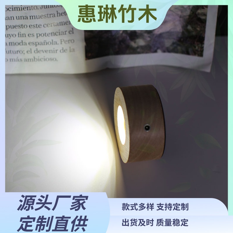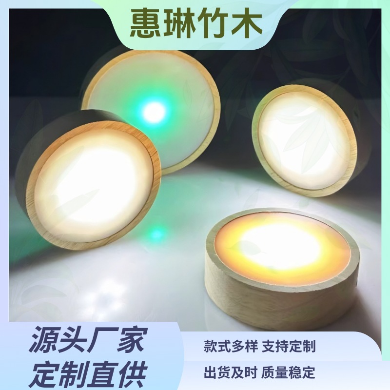 批发圆形实木发光底座扩散版USB充电款DIY木质圆形LED小夜灯底座