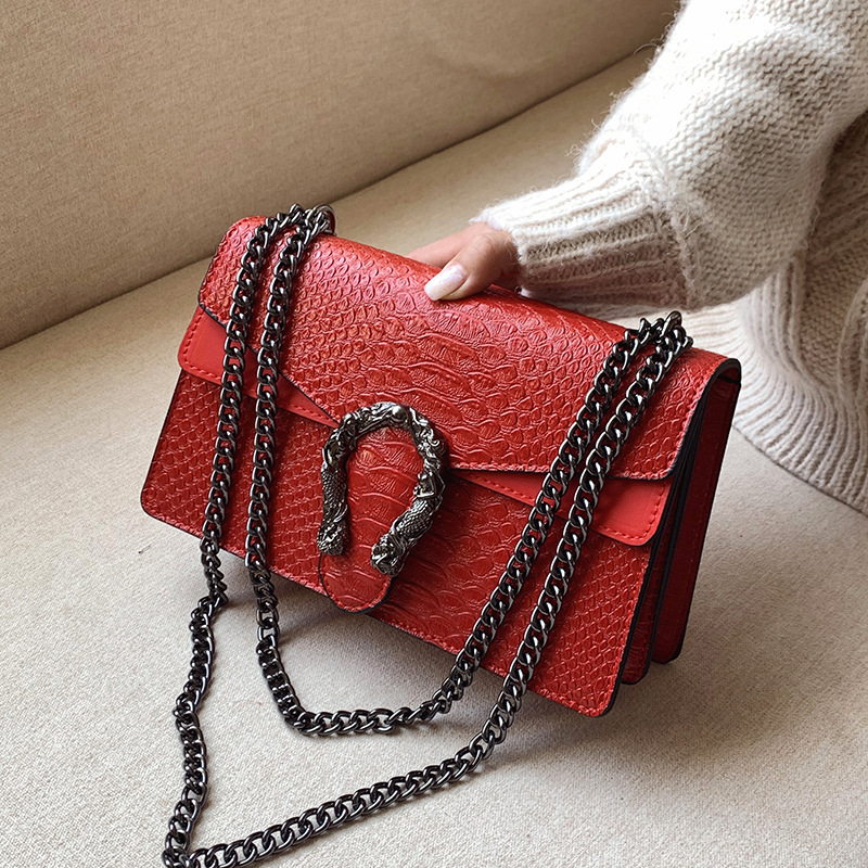 小c包包k女2021新款潮韩版时尚鳄鱼纹链条单肩斜挎包压花酒神女包