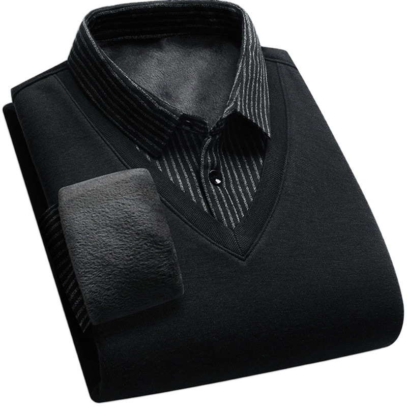 批发境外秋冬加绒假两件中老年衬衣套头毛衣针织衫【量大可谈】