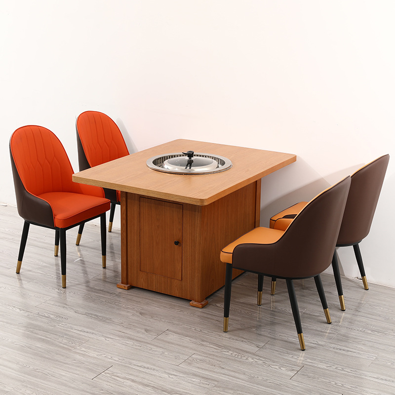 四人地锅灶台商用铁锅炖桌电陶炉地锅鸡烧电铁锅炖锅台现代餐桌
