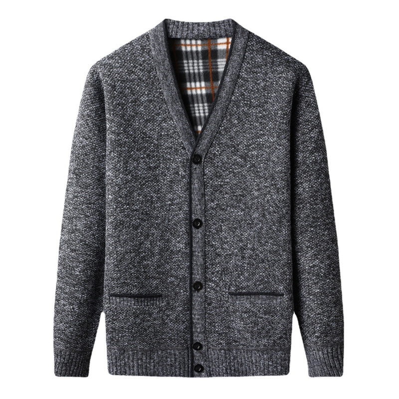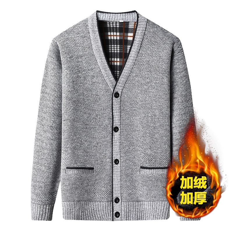【外贸跨境】新款冬季中老年男士加绒针织纽扣开衫毛衣爸爸装外套