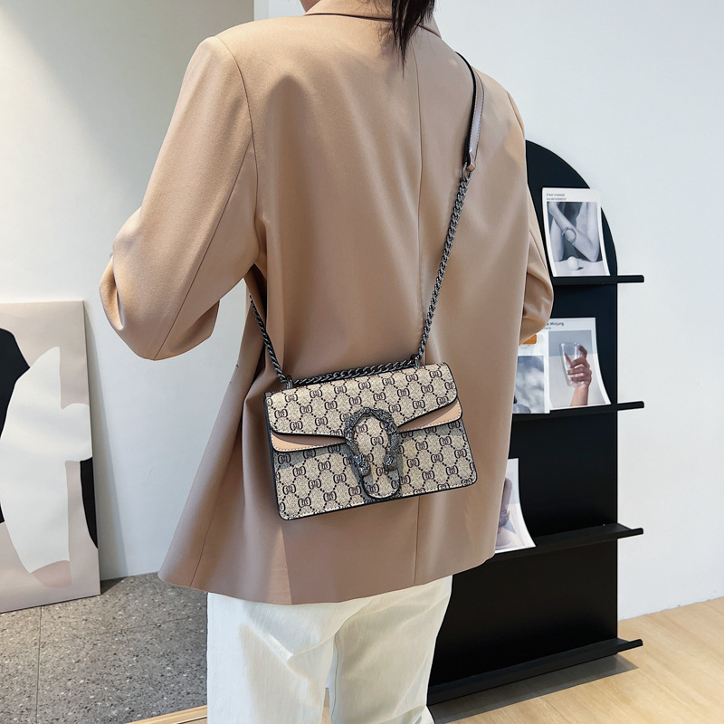 2024新款跨境时尚潮流复古印花链条包流行腋下包斜跨单肩包小方包