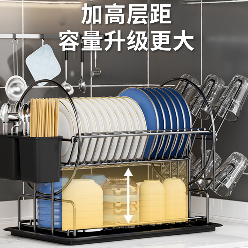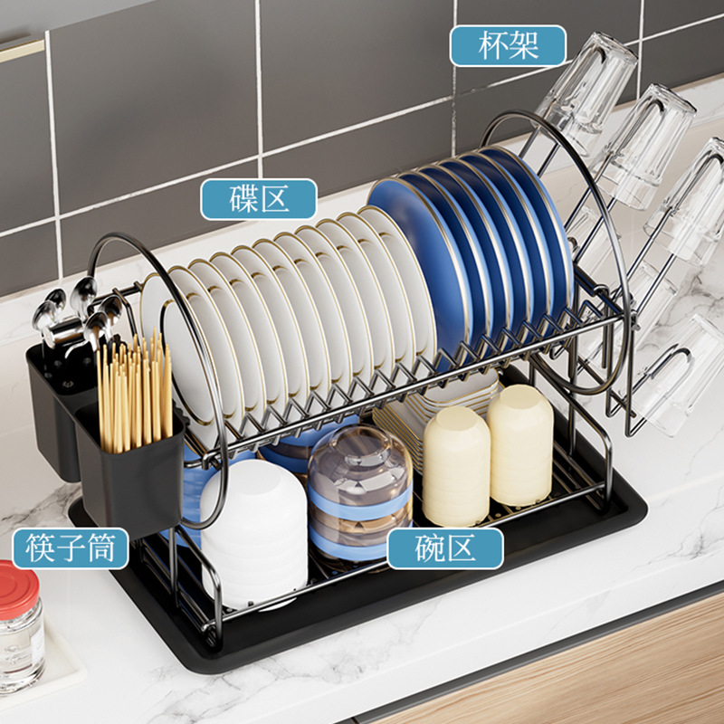 厨房碗碟沥水架跨境置物架碗碟架沥水带筷笼收纳家用台面碗盘架子