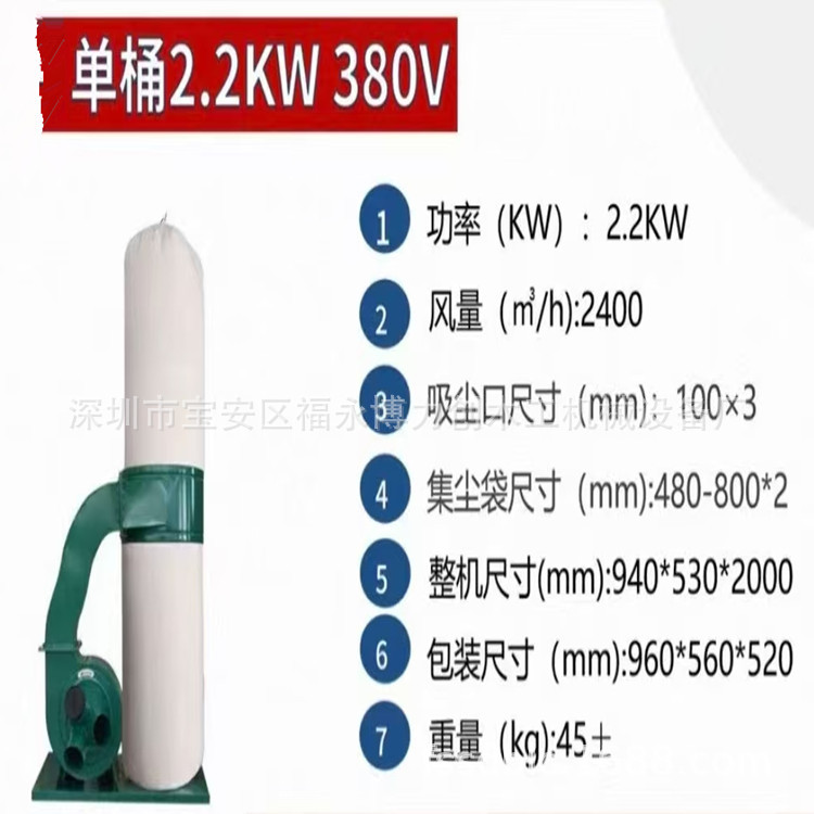 木工单桶吸尘器 工业除尘器 五金吸尘器MF9022单布袋吸尘器 机械