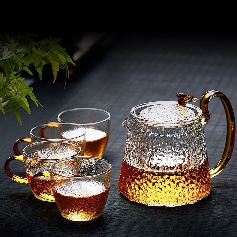 家用高硼硅玻璃带过滤煮茶壶 可电陶炉加热花茶壶锤纹玻璃泡茶器