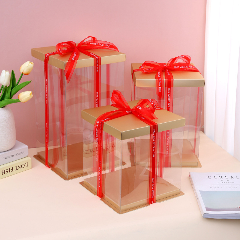 透明加高蛋糕盒食品级塑料烘焙包装盒三合一加厚生日蛋糕盒多尺寸