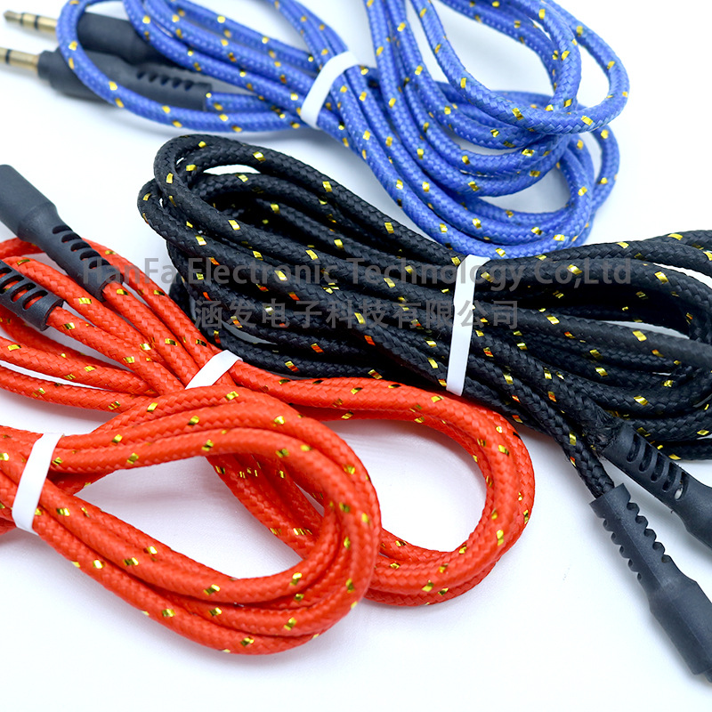 厂家直销外贸产品金丝3.5mmAUX车载音响耳机手机编织线