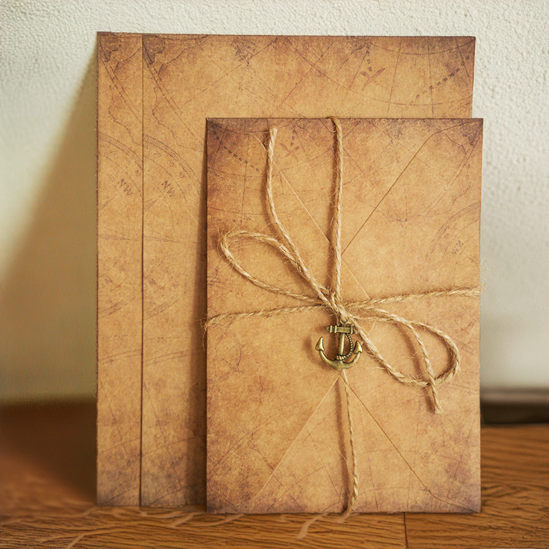 A5手写情书可印LOGO高级感金属牛皮纸复古信封信纸套装告白信笺