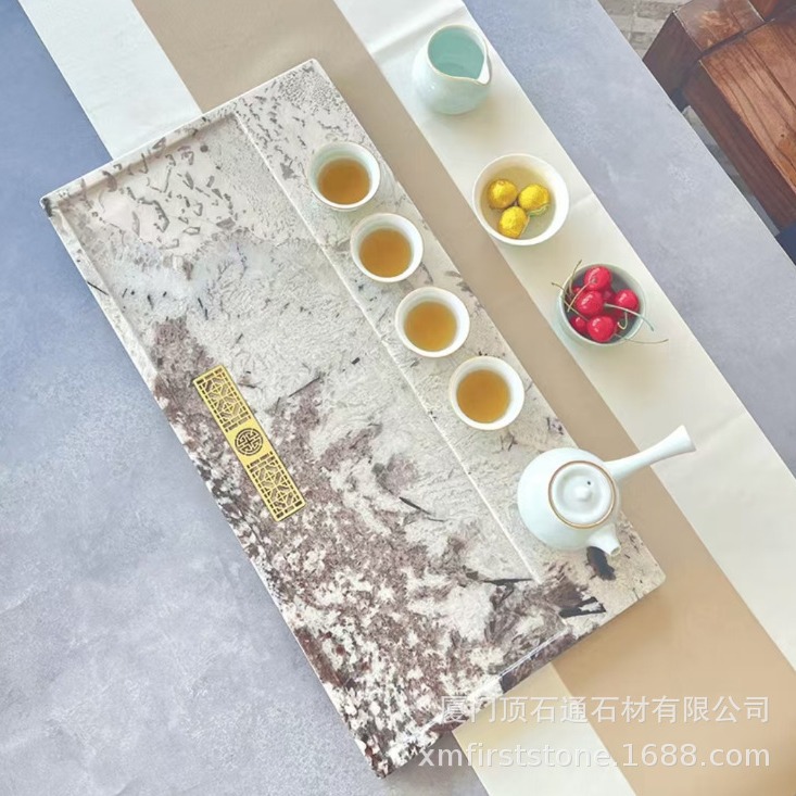 天然奢石茶盘新中式公司家用招待大理石托盘潘多拉干湿两用泡茶台