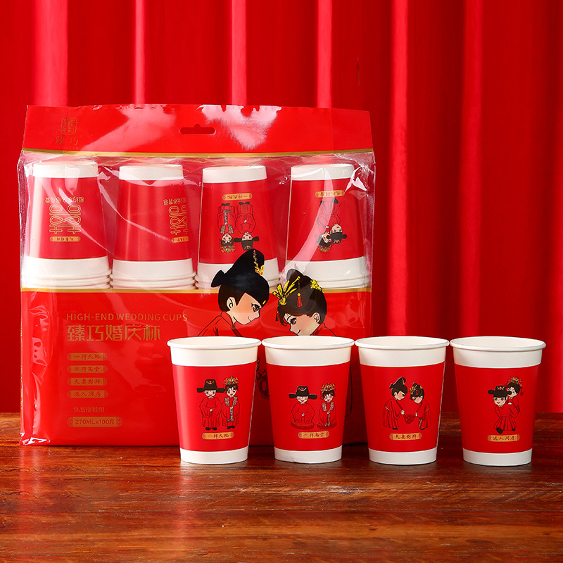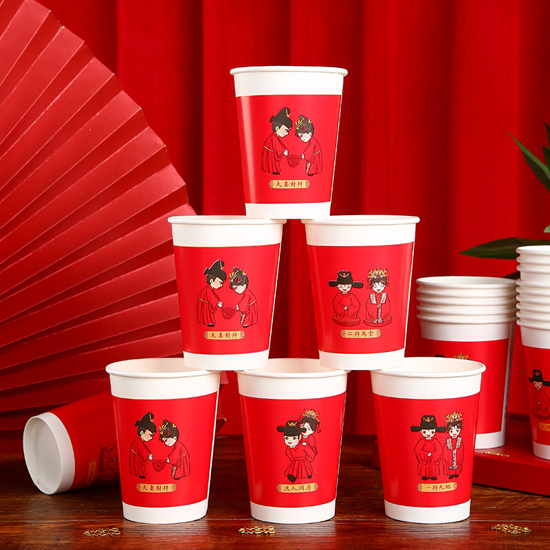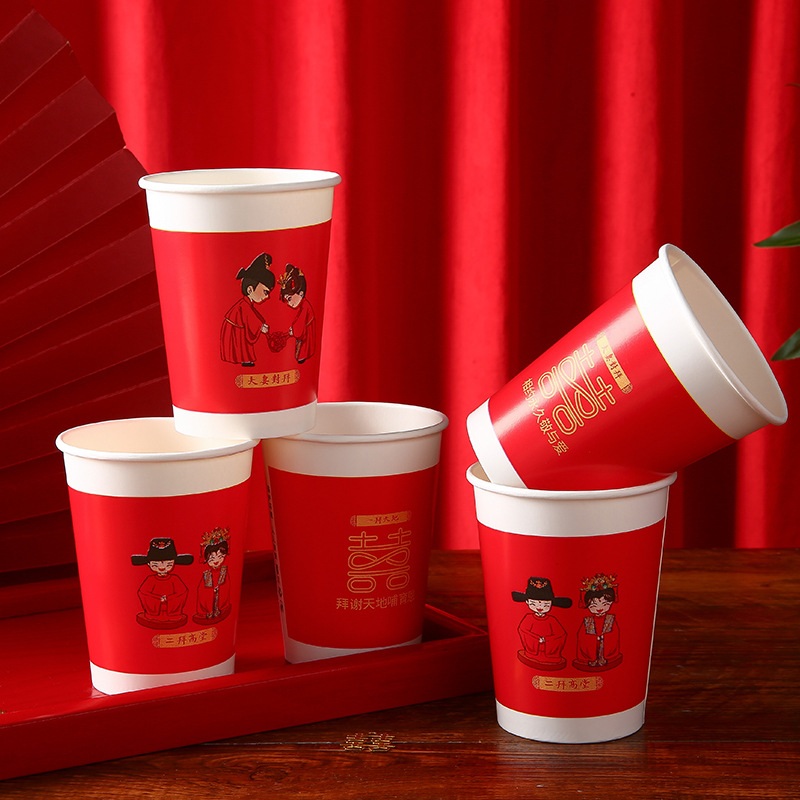 结婚一次性纸杯加厚吾家有喜红色家用喜杯婚庆喜杯子加厚环保纸杯