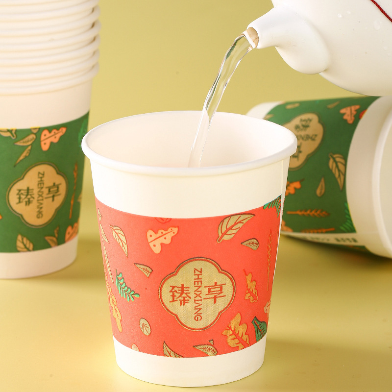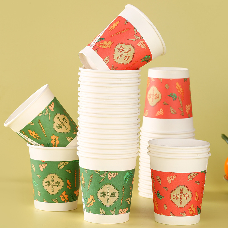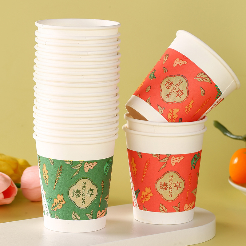 一次性纸杯家用野餐聚会国风臻享纸杯广告商务子LOGO水杯可降解
