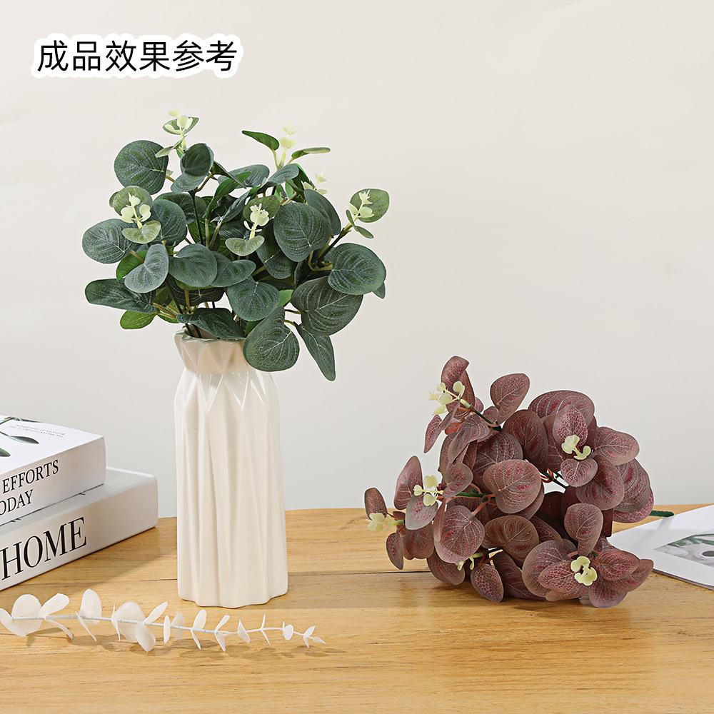 跨境仿真尤加利叶子绿植配件插花搭配婚礼装饰金钱叶仿真人造植物