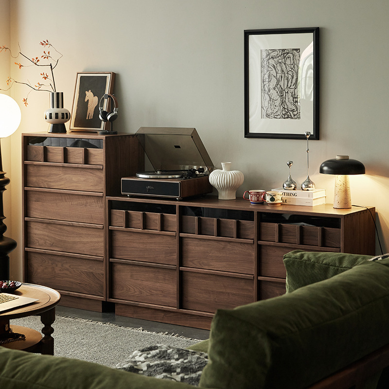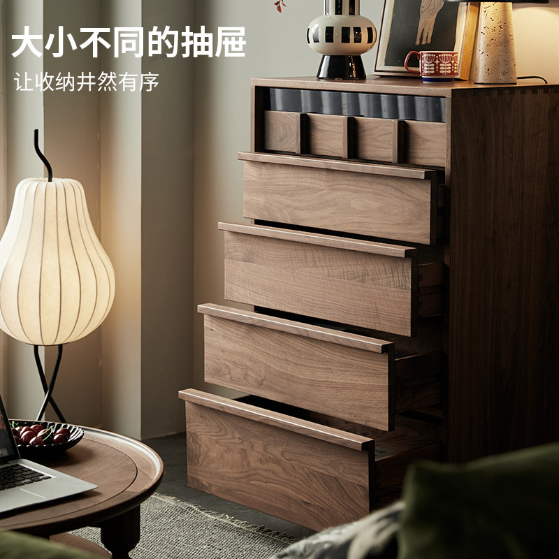 黑胡桃木全实木中古五斗柜樱桃木原木骨骼线复古多功能储物斗柜