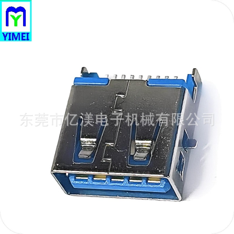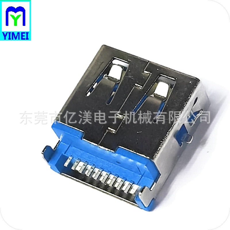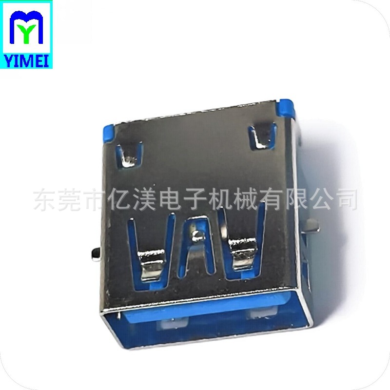 USB3.0连接器 AF母座沉板2.45平口 SMT型蓝胶U3 A母沉板2.45铜壳