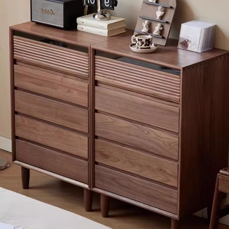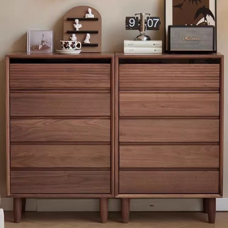 北美黑胡桃木全实木五斗柜简约现代客厅沙发边柜樱桃木电视边斗柜