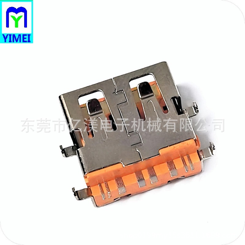 USB3.0连接器AF母座沉板3.5 SMT型橙胶过10GBU3 A母沉板3.5过10GB