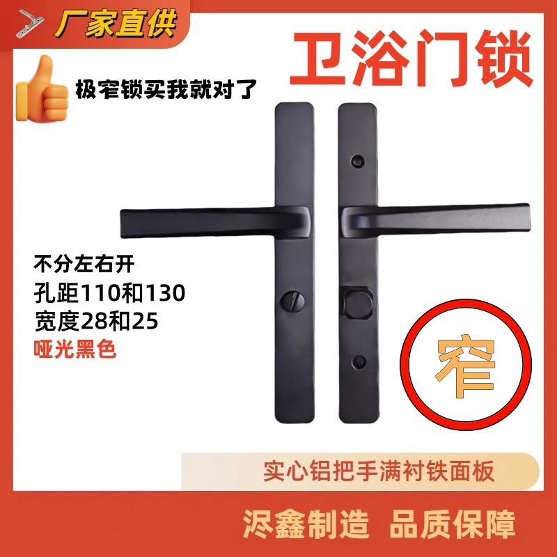 黑色极窄边门框阳台卫生间浴室门锁厨房洗手间厕所单舌执手无钥匙