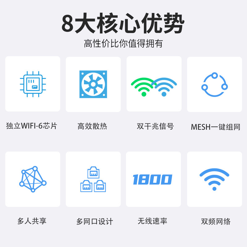 | 类别 | WIFI6路由器 | 传输速率 | 1800Mbps |