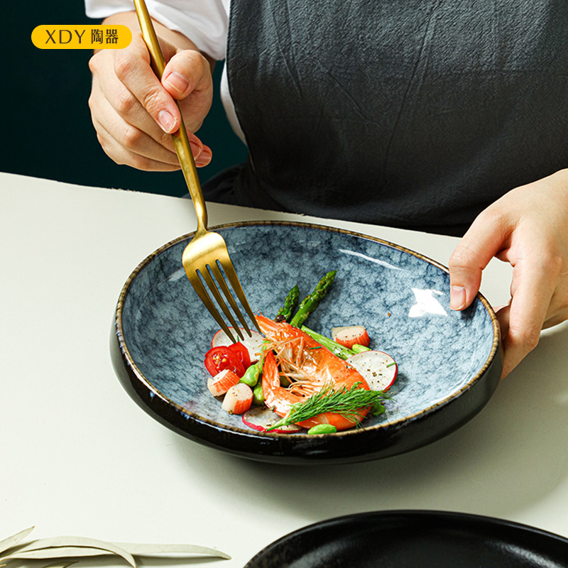 家用高颜值陶瓷碗8寸厚边圆钵加厚防烫泡面碗复古汤碗沙拉碗批发