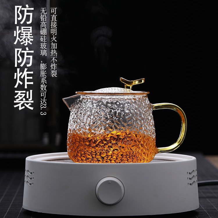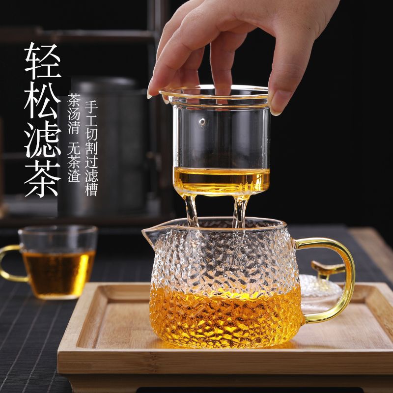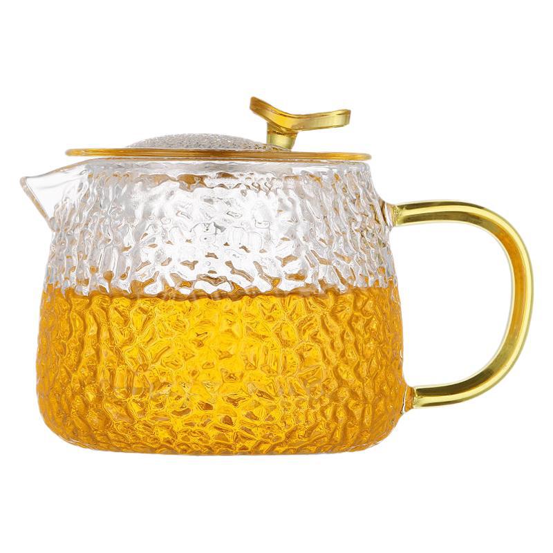 家用锤纹玻璃茶壶过滤复古泡茶器加厚透明带把玻璃套装茶壶
