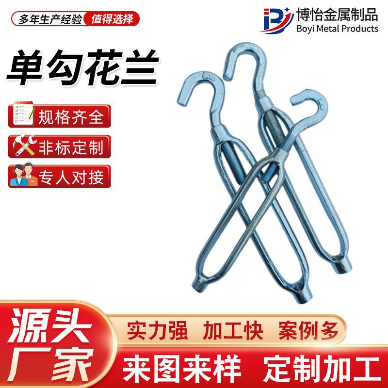 吊顶专用单钩镀锌花兰螺丝吊顶钢结构专用配丝杠一头花兰钩可调节