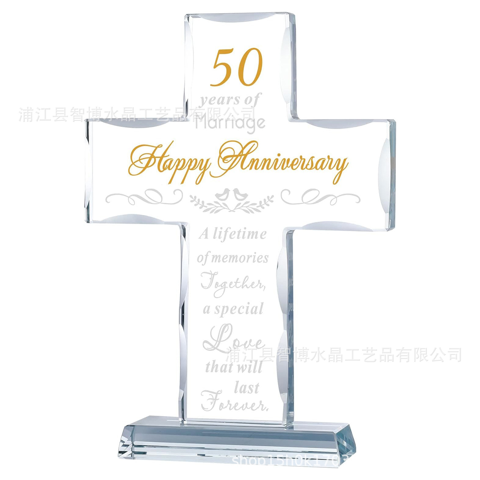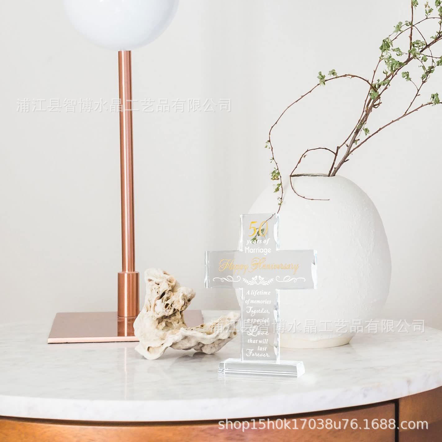 跨境水晶十字架摆件50周年结婚纪念日玻璃十字架礼品情侣婚姻装饰
