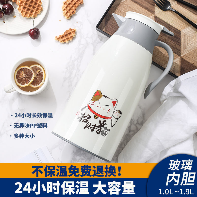招财猫保温壶玻璃内胆保温水壶茶楼暖水壶宿舍热水瓶卡通风格
