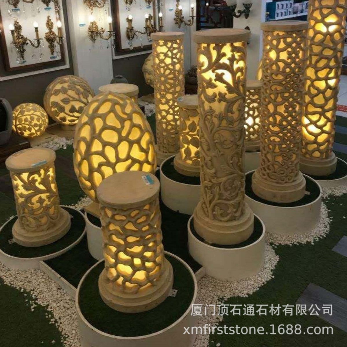 欧式圆柱人造树脂砂岩景观灯玻璃钢雕塑镂空灯球公园酒店砂岩夜灯