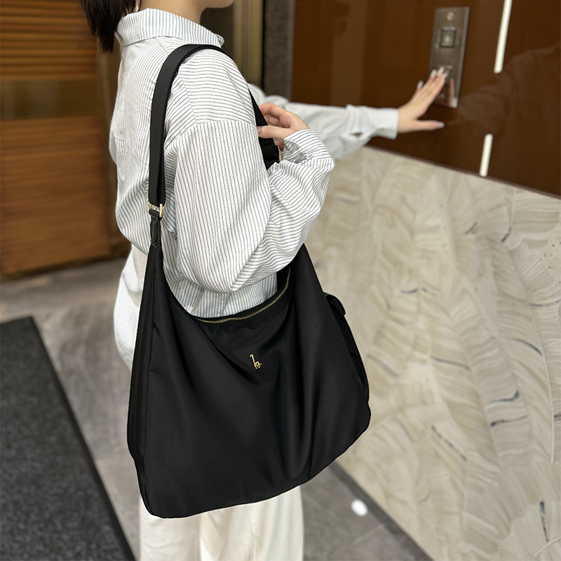 法式小众托特包大容量单肩腋下包百搭通勤包尼龙配真皮斜挎包手提