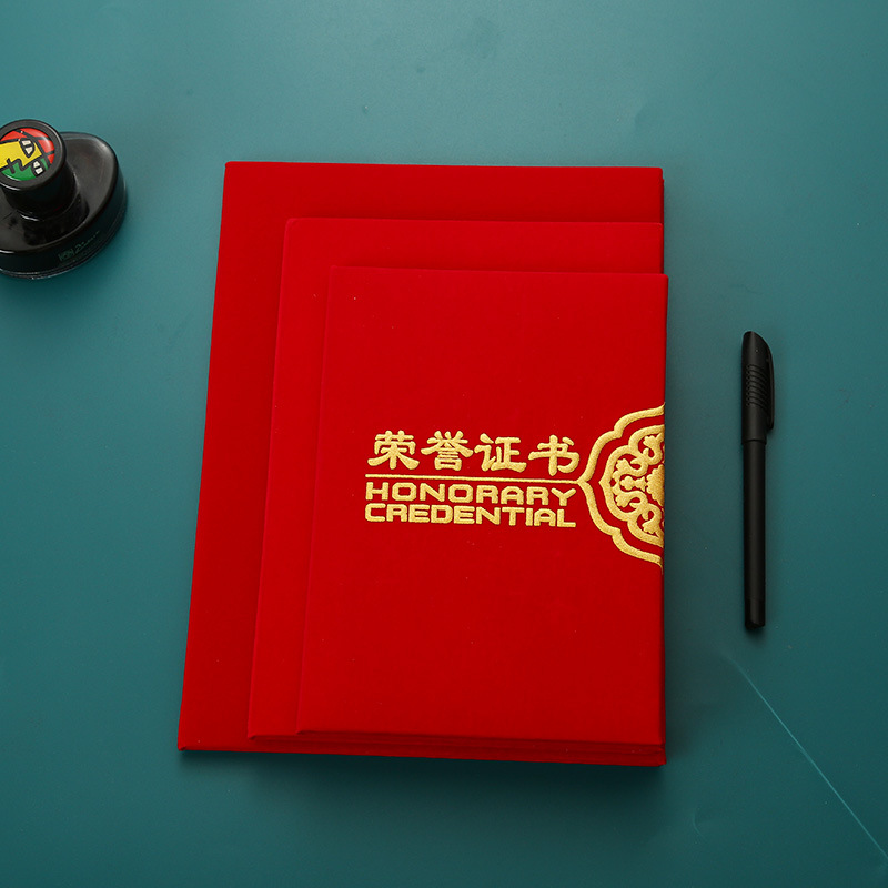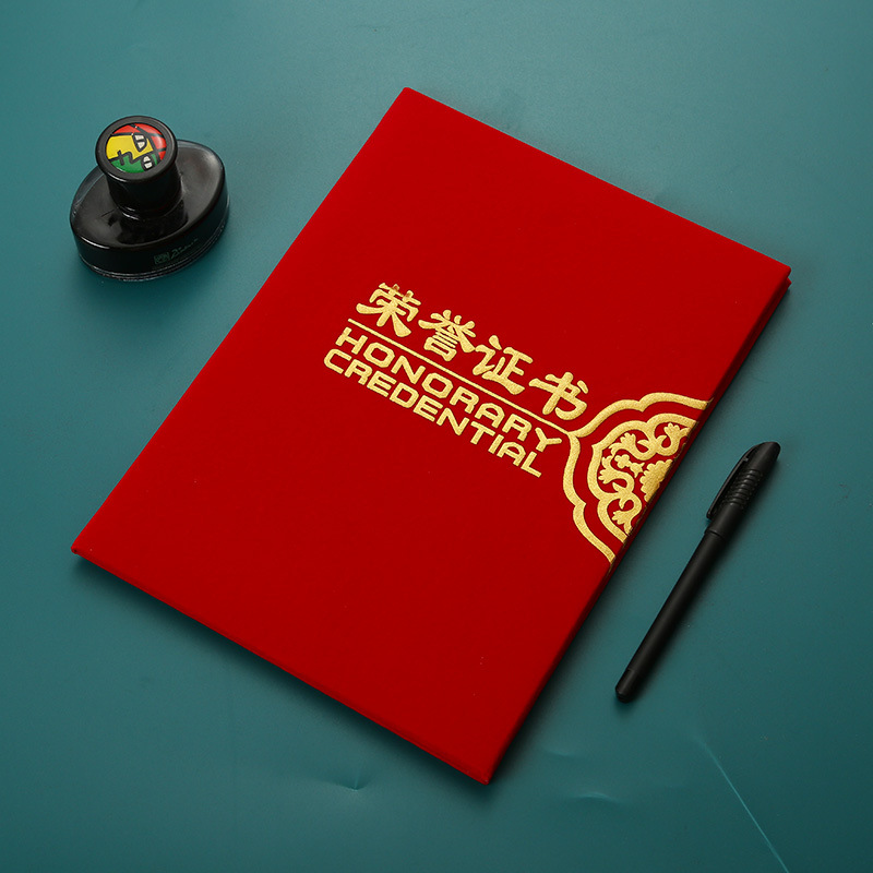 红色荣誉证书仿皮烫金证书内芯A4绒面获奖结业证书外壳内页聘书