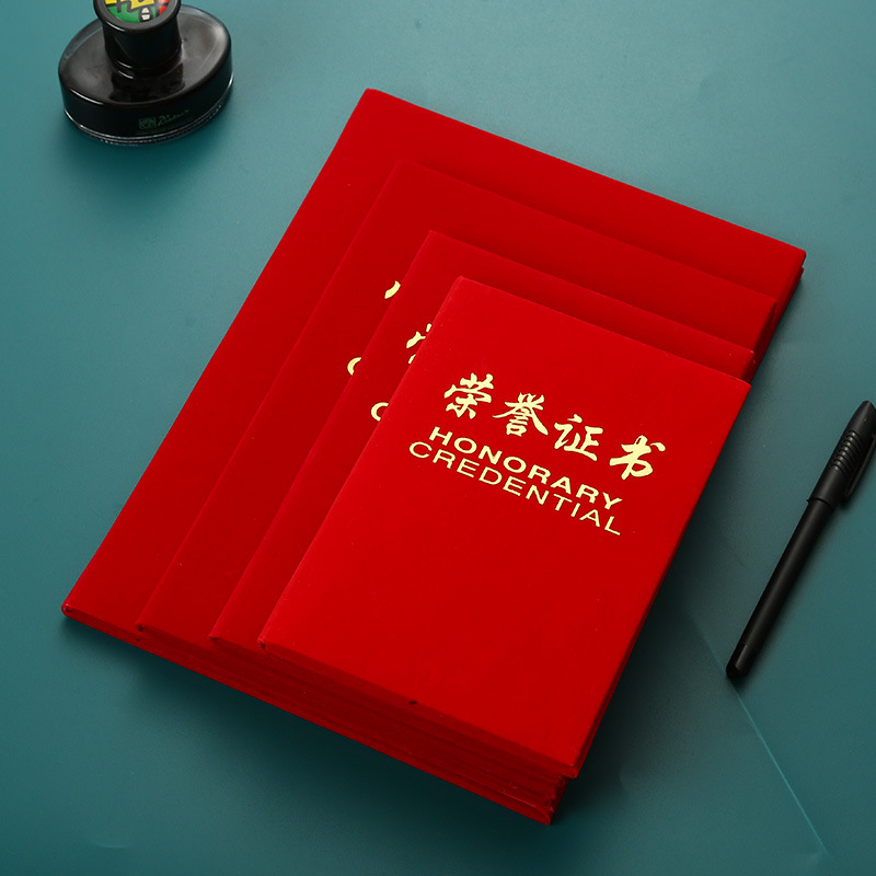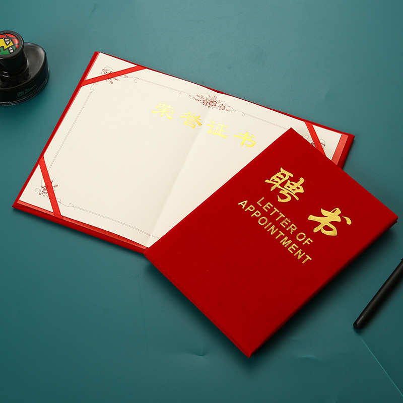 烫金绒面荣誉证书A4浮雕金字外壳聘书获奖奖状结业证书内页批发