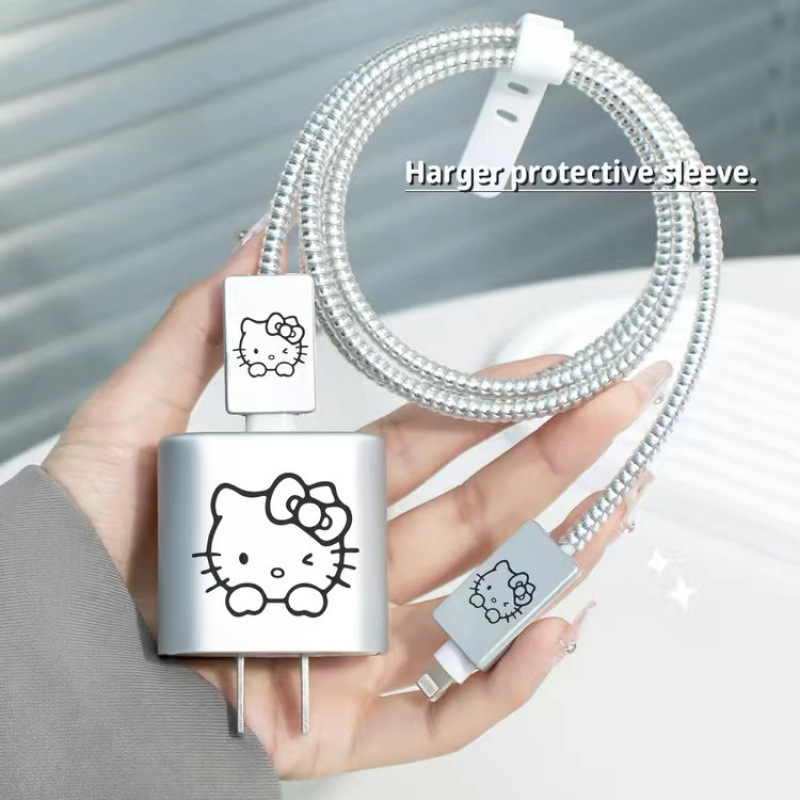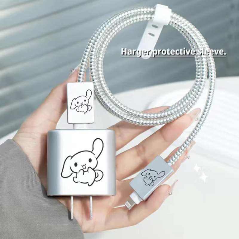 苹果18/20w快充银色充电器保护壳充电头保护套软壳单面彩绘