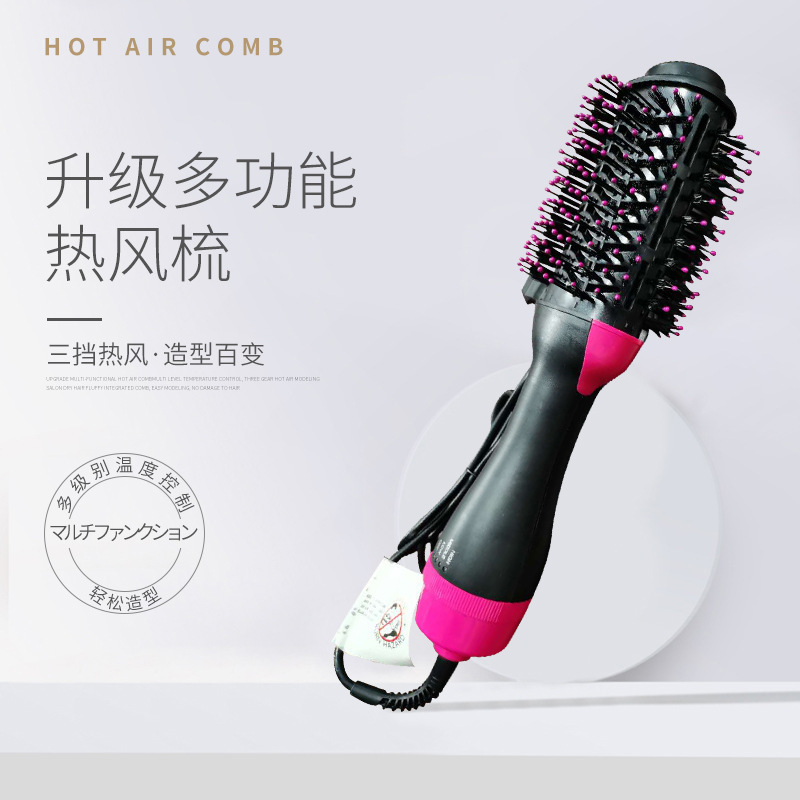 跨境负离子护发蓬松美发器热风梳三合一自动卷发干湿直发器吹风梳