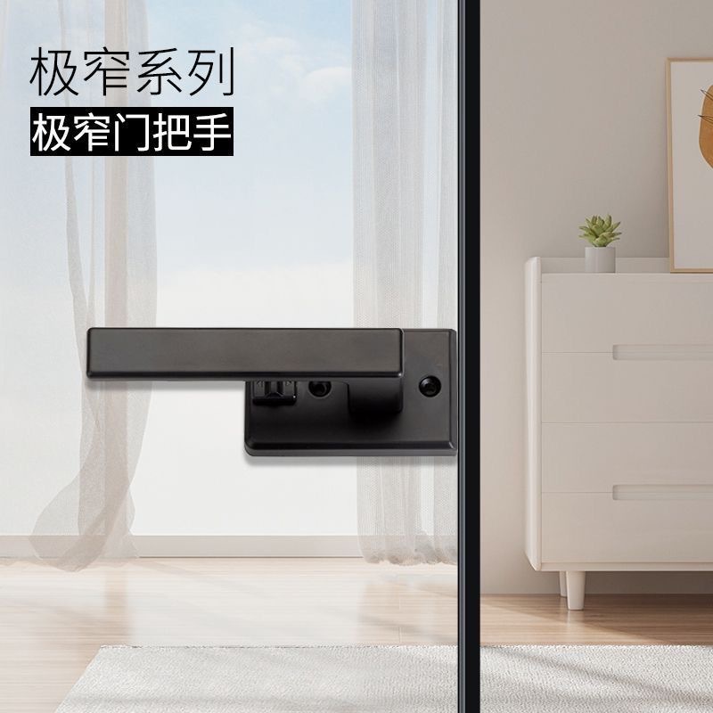 极窄静音玻璃门锁1618型材黑色有框铝合金单舌锁钥匙卫生间