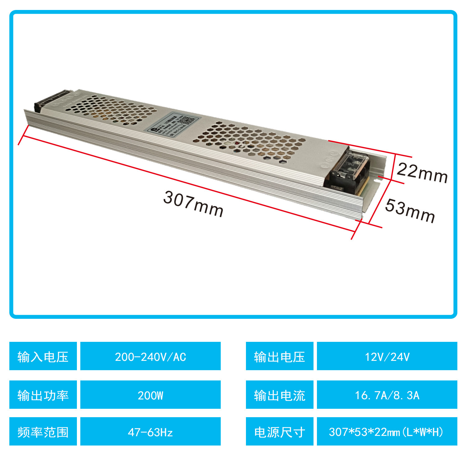 室内长条电源24V/12V-200W明纬开关电源led灯带灯箱变压器展示柜