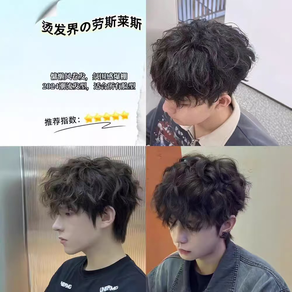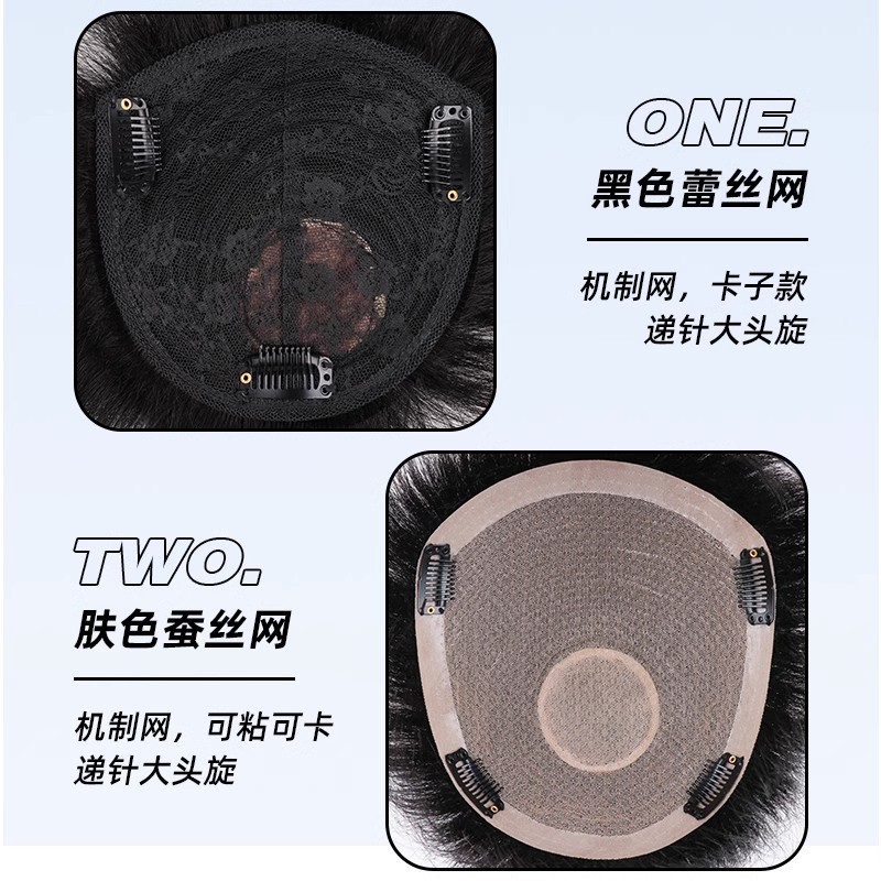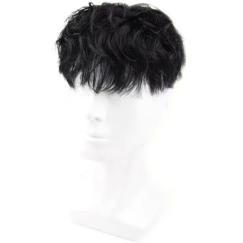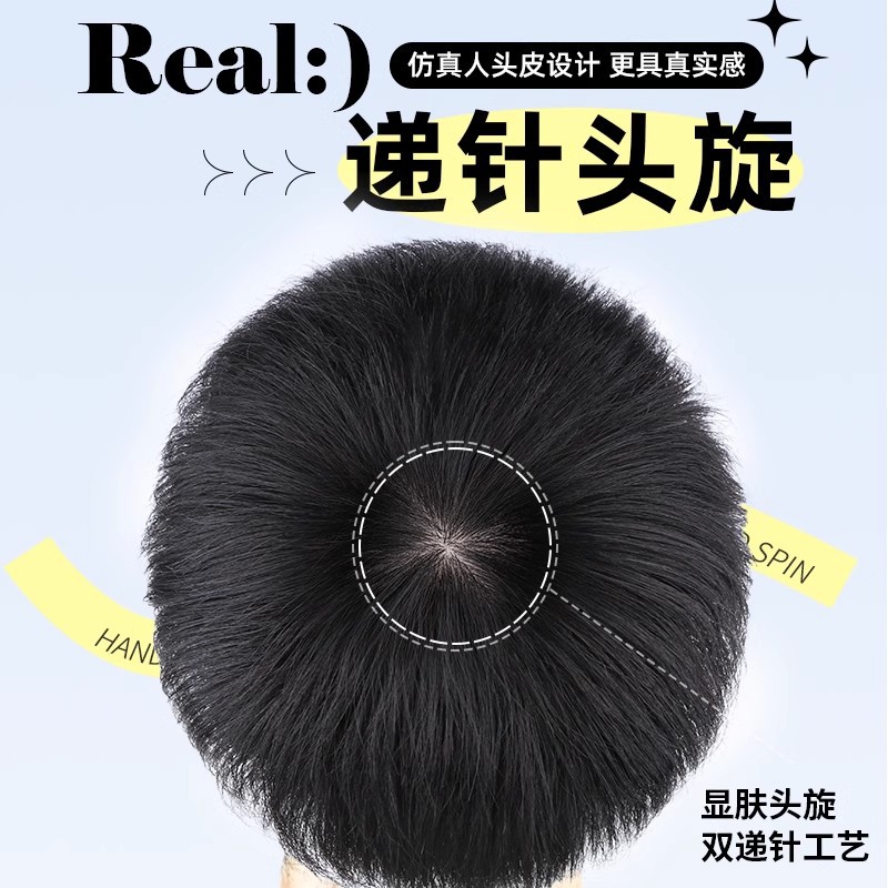 千弘假发男短发全真发莱斯利烫发头顶补 发片隐形无痕手织男生卷