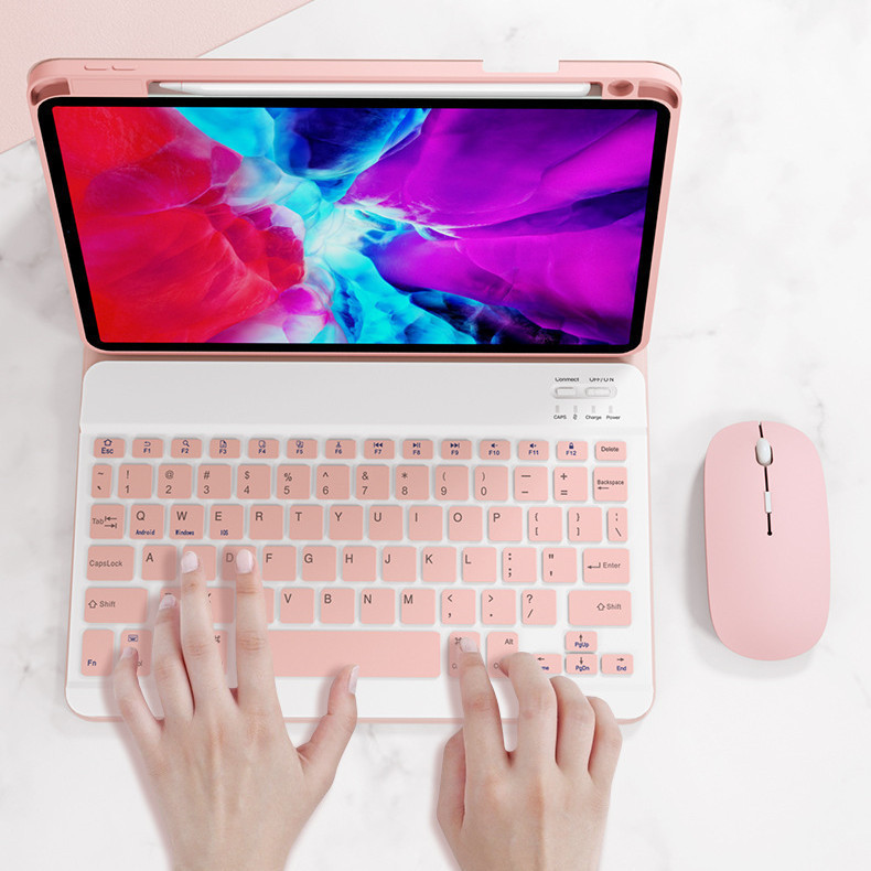 | 颜色 | 樱花粉上笔槽保护套&樱花粉键盘&鼠标 | 颜色 | 薄荷绿上笔槽保护套&薄荷绿键盘&鼠标 |