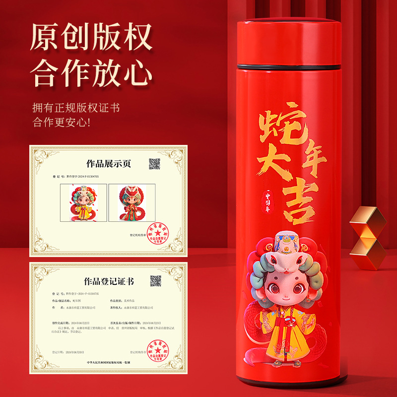 2025蛇年礼品杯中国风国潮不锈钢保温杯水杯新年节日活动批发刻字