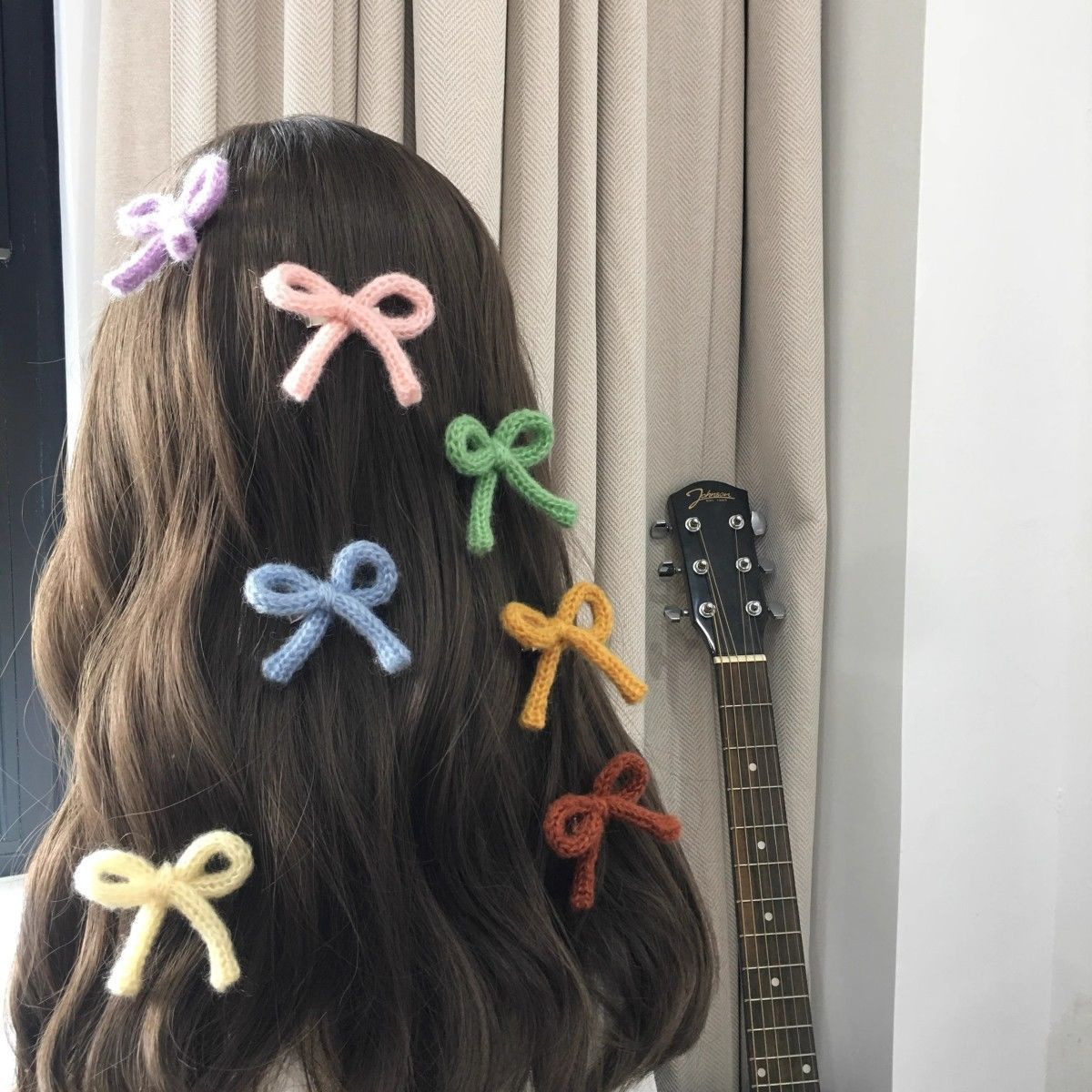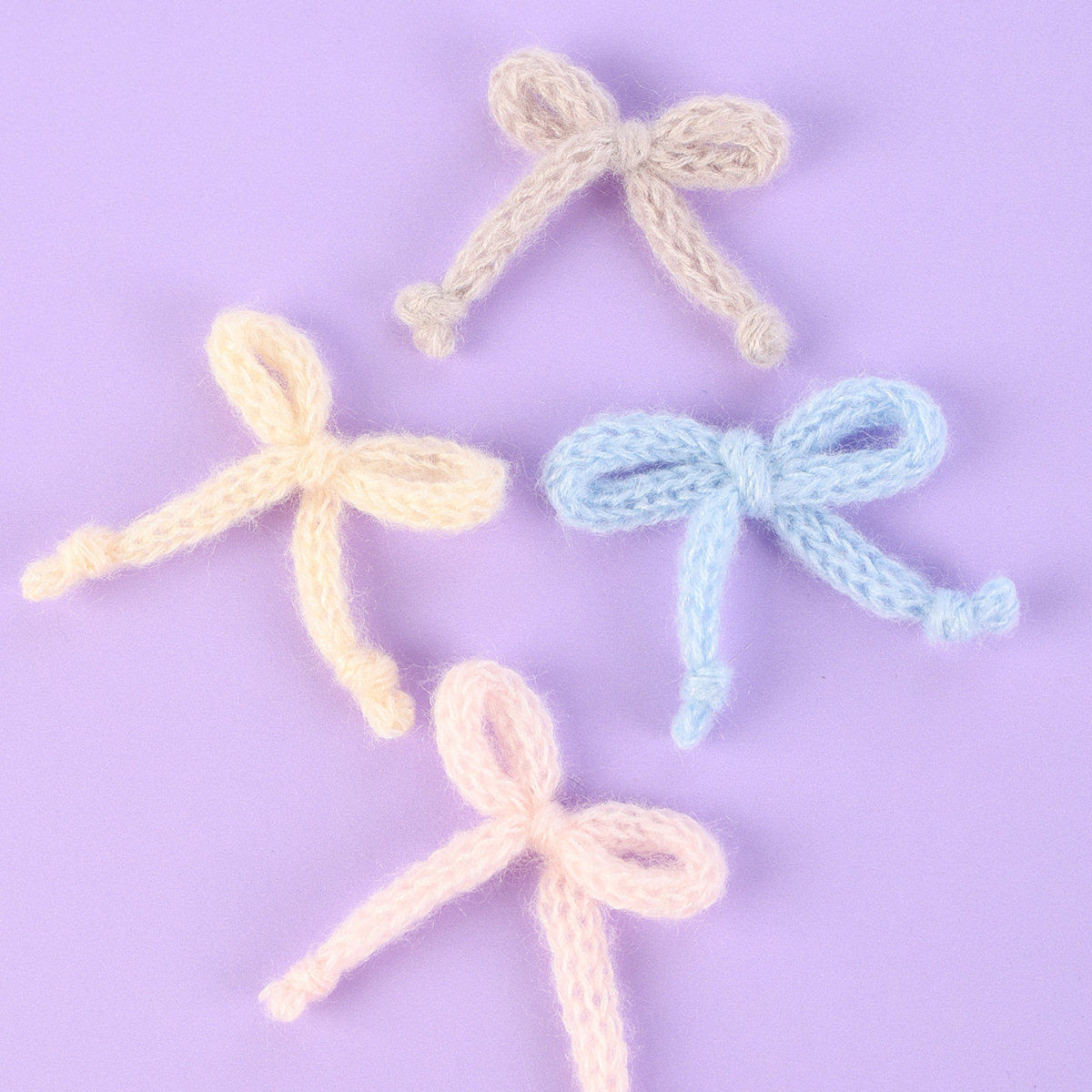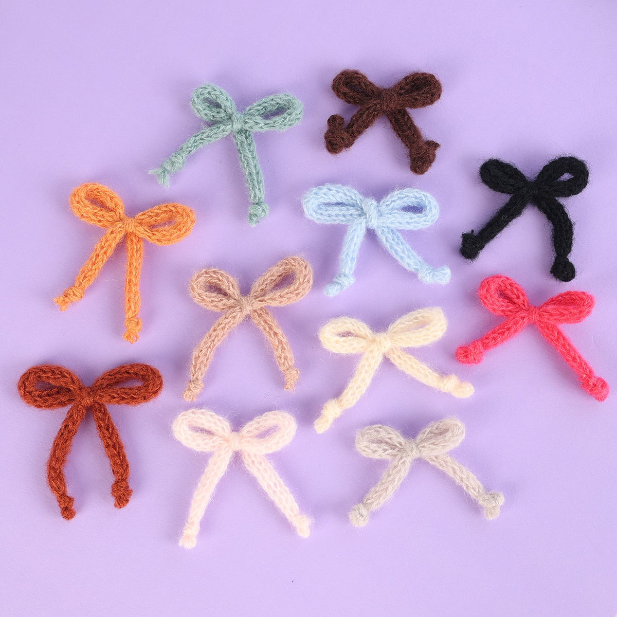 糖果色手工毛线边蝴蝶结 韩系针织彩色儿童刘海夹辅料diy饰品