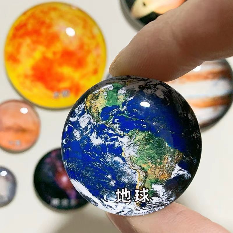 外贸批发太阳系八大行星立体冰箱贴白水晶玻璃磁性天文教具模型