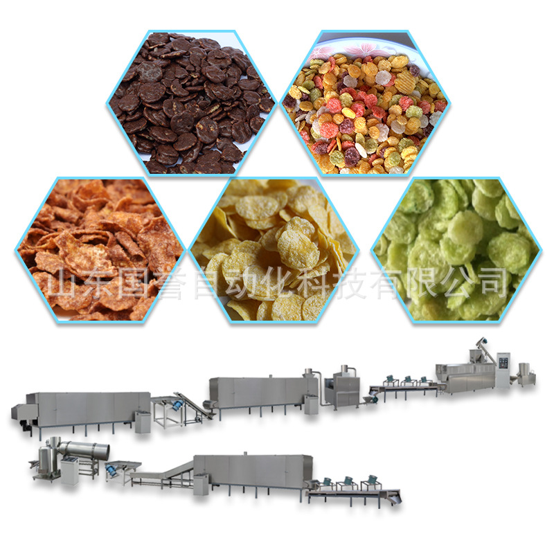 早餐谷物玉米片生产线 双螺杆挤压膨化机组合 休闲膨化食品生产线
