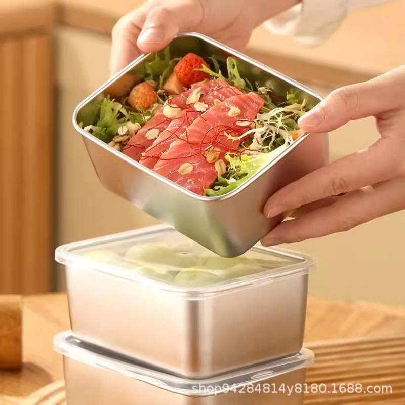 保鲜盒不锈钢方盘分装盒火锅备菜加深方形户外野餐盒味盒份数盆子