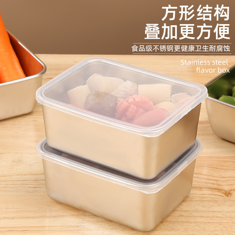 | 规格 | 13.5x10.5x4.8带盖保鲜盒 | 颜色 | 410马氏体不锈钢 |
