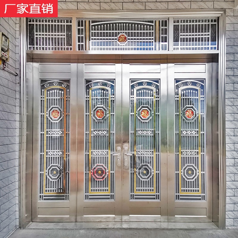 佛山304不锈钢门别墅防盗大门不锈钢大门四开门乡村家用入户门