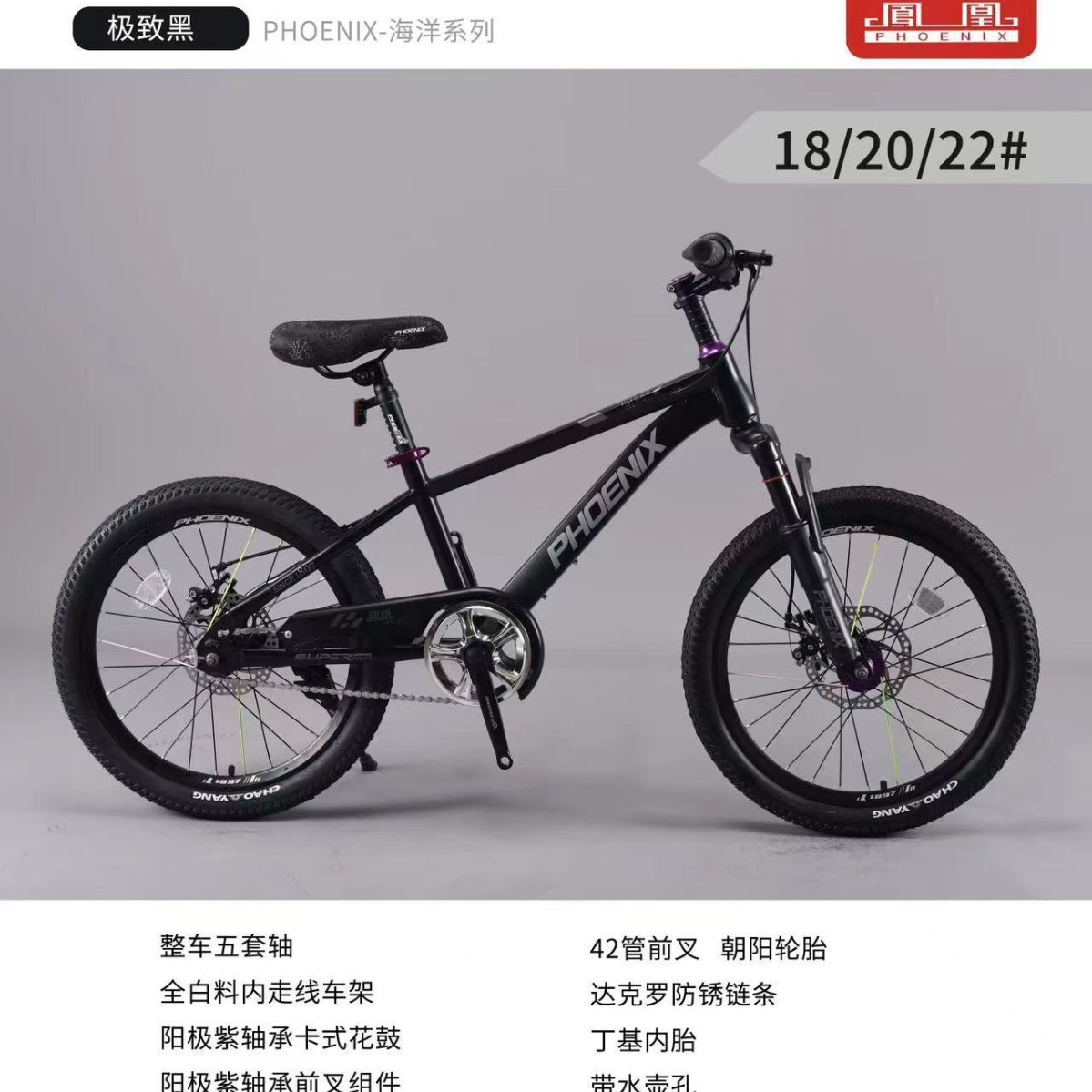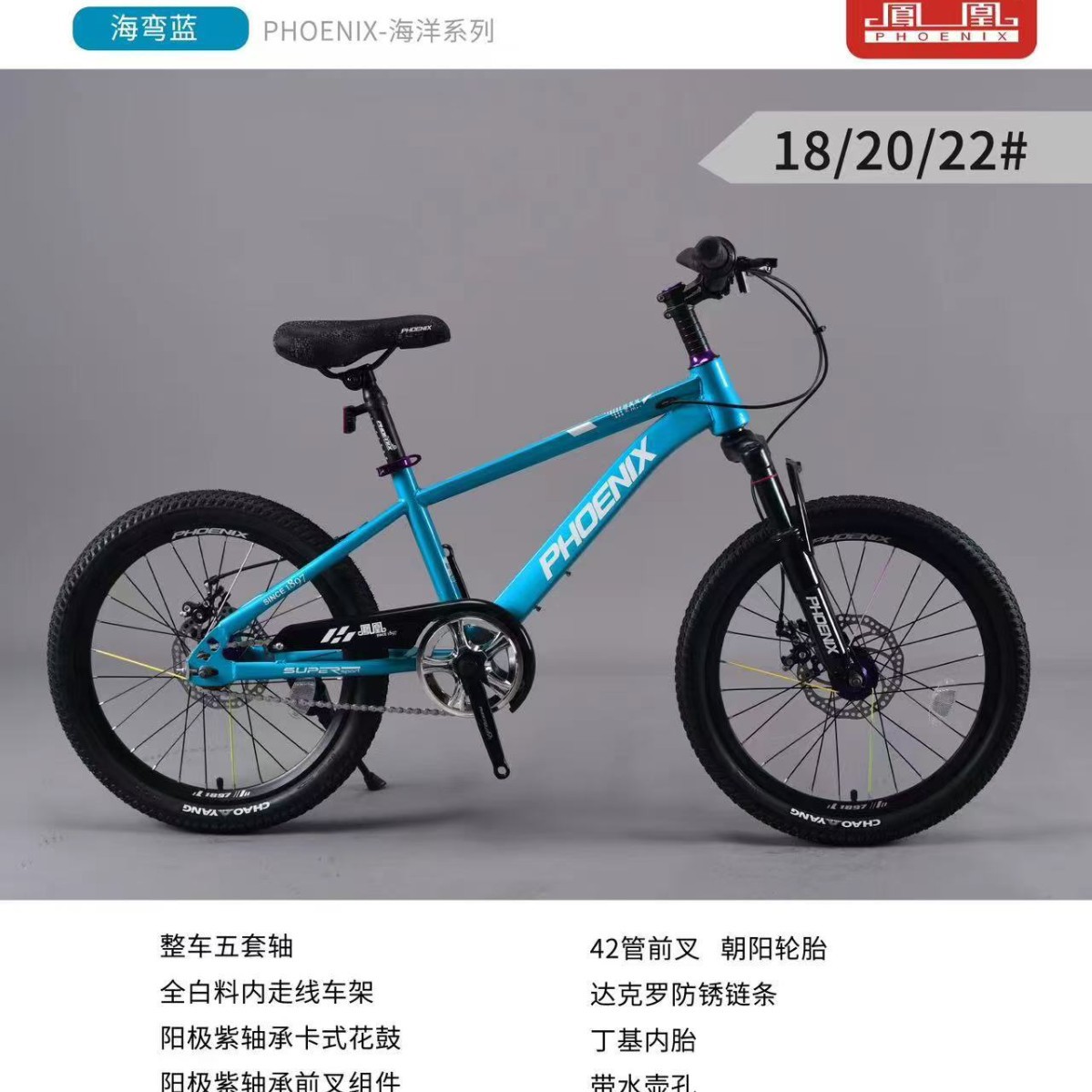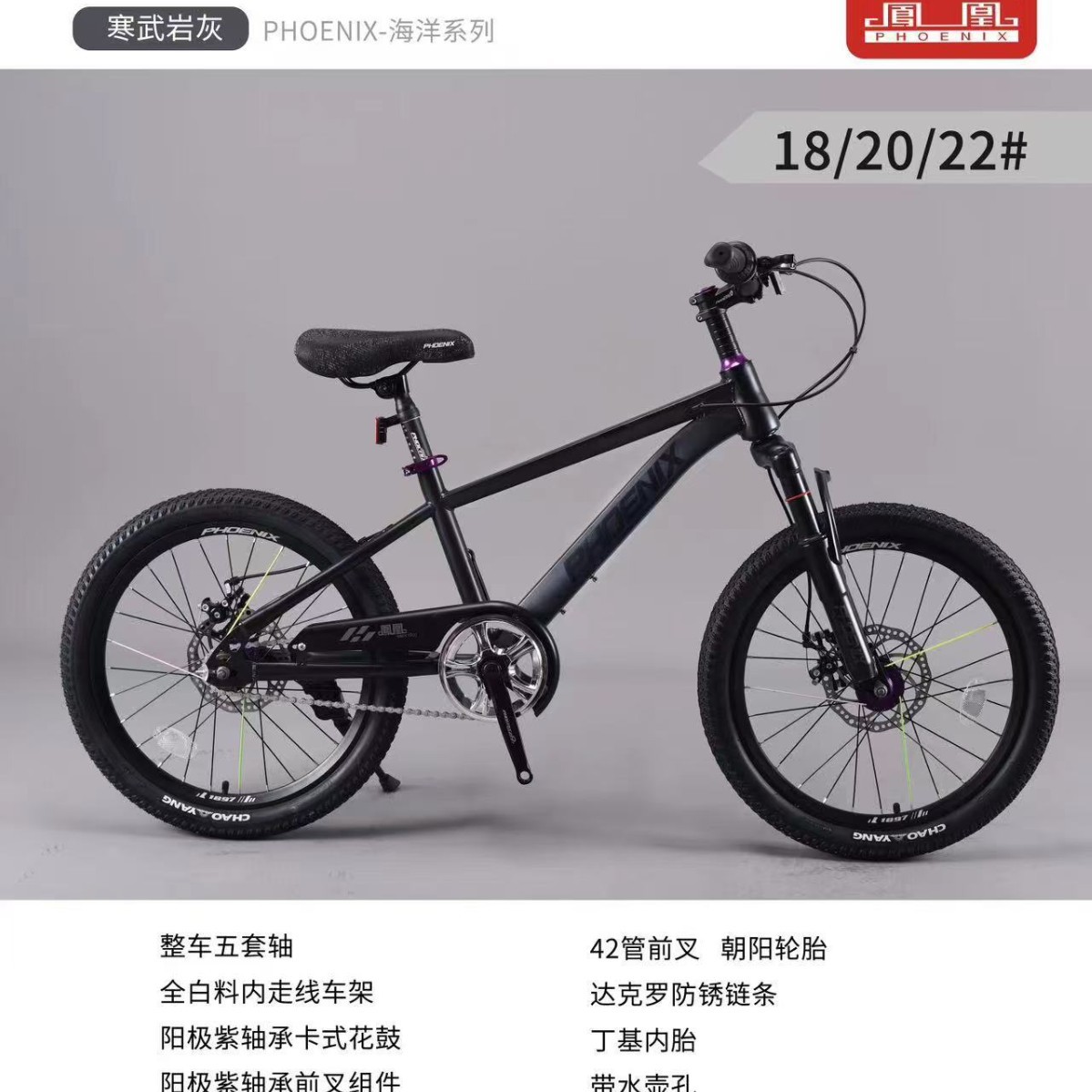 凤凰6-8-10-15岁中大童男女孩18寸20寸22寸单速山地碟刹学生
