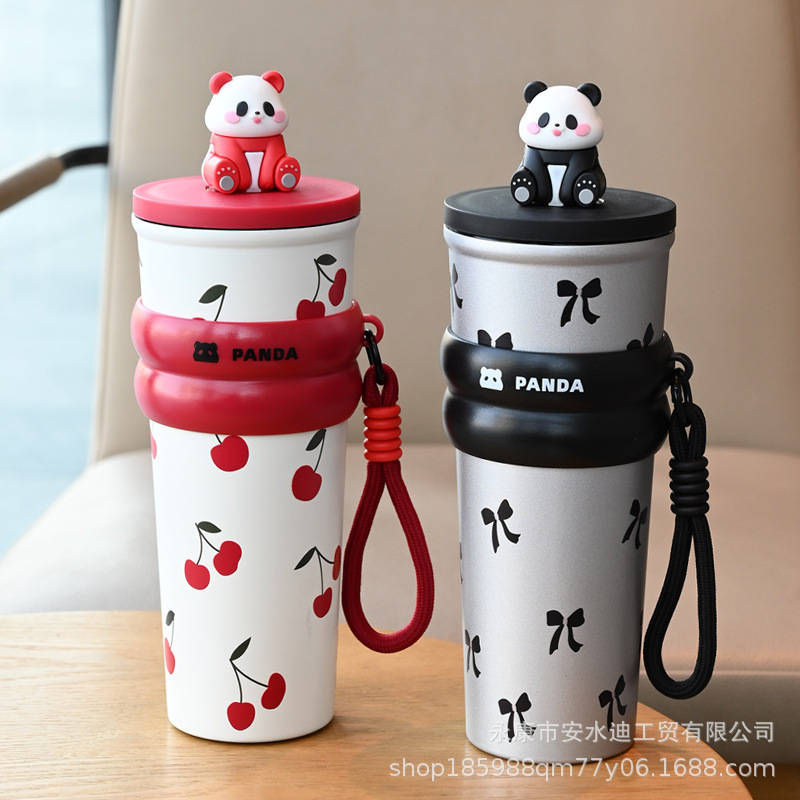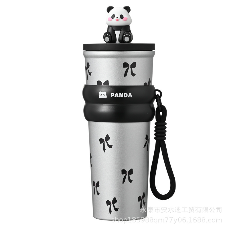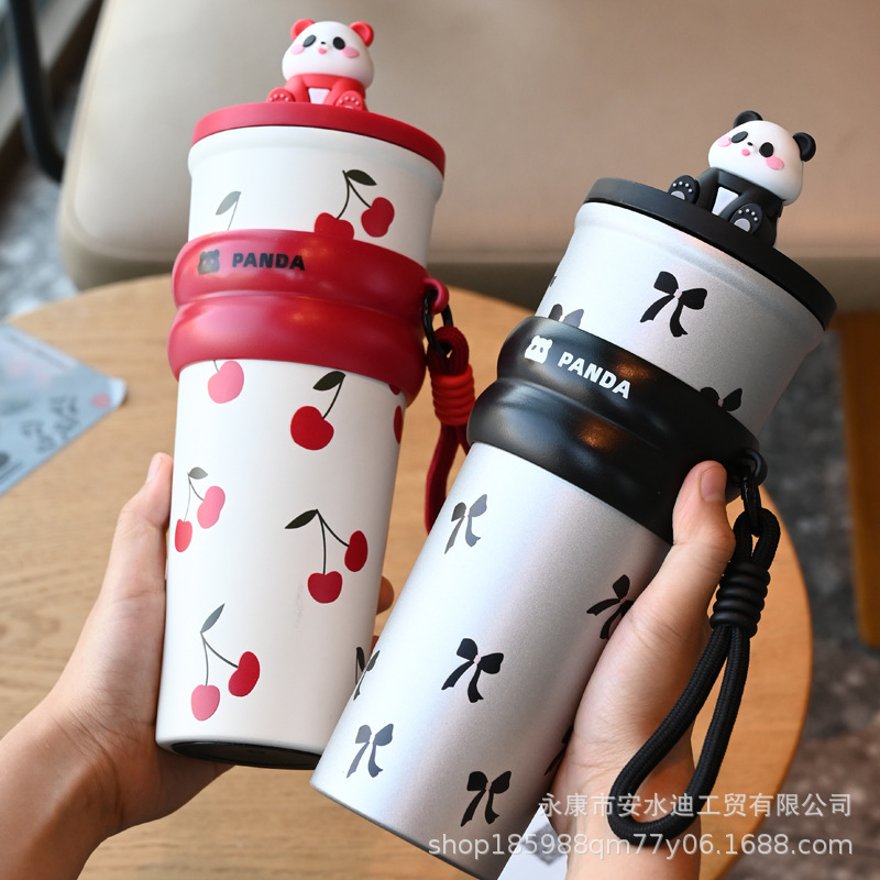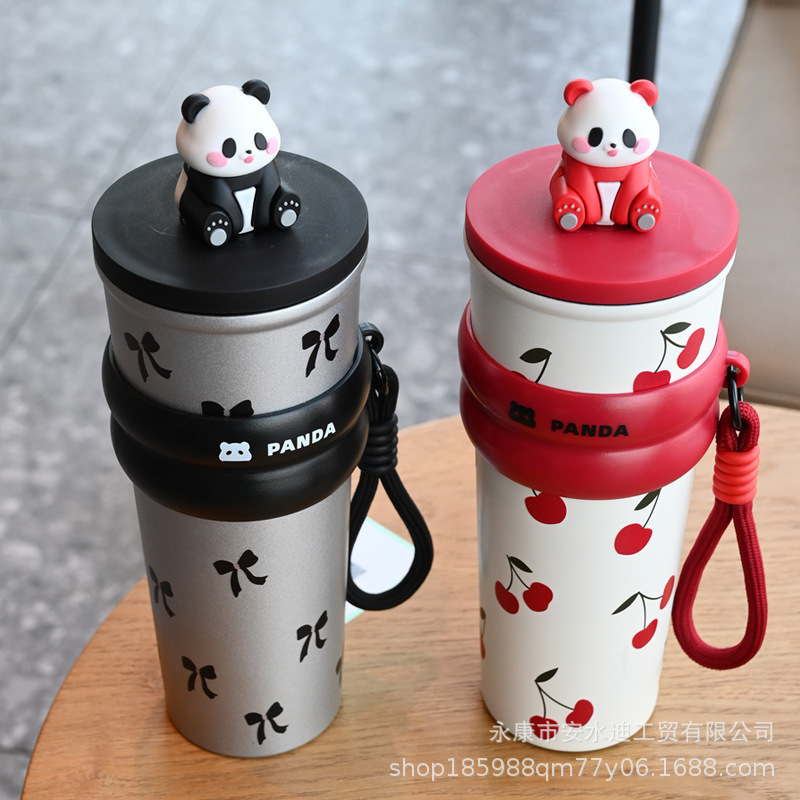 大容量熊猫吸管保温杯陶瓷内胆咖啡杯女生保冷水杯车载吸管杯