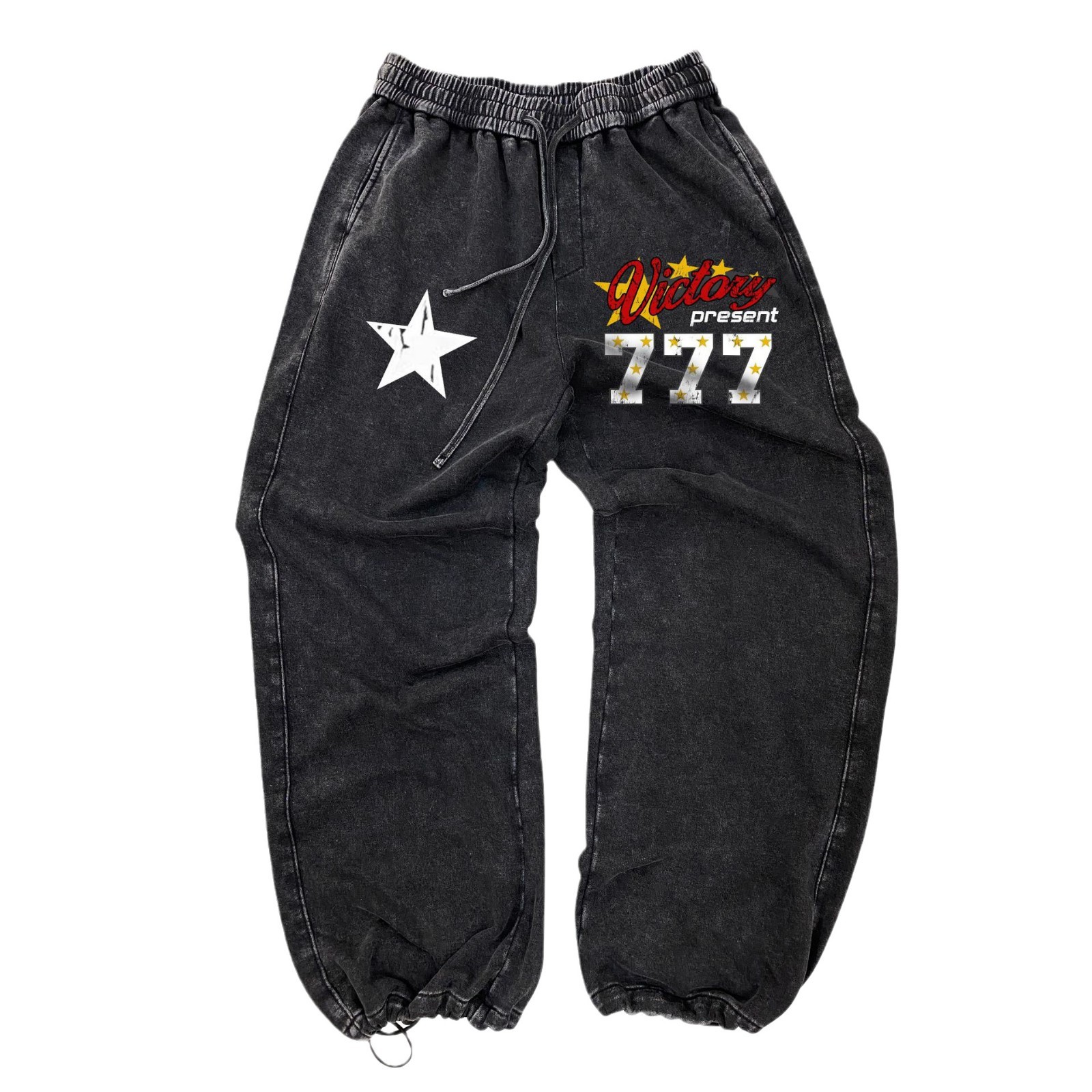 元森旺街头宽松休闲做旧直筒卫裤百搭嘻哈oversize潮流情侣束脚裤