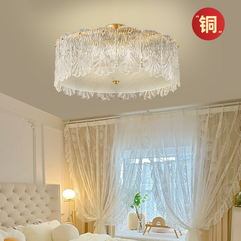 全铜法式轻奢卧室吸顶灯美式中古餐厅书房小资水晶2025新款