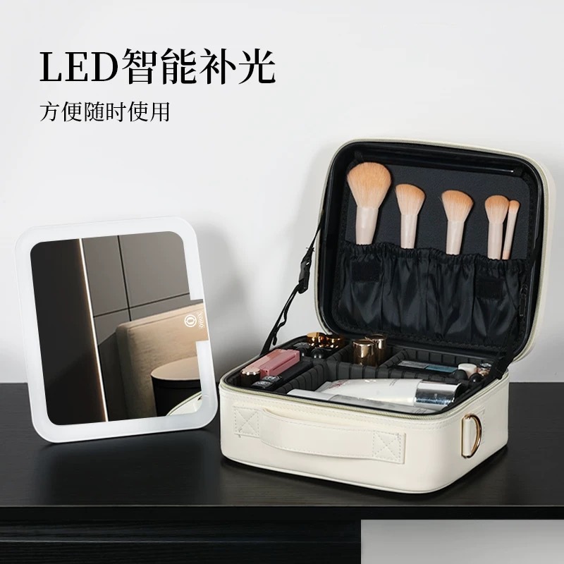 大容量新款化妆包带镜子LED灯便携旅行外出手提高级化妆品ins收纳