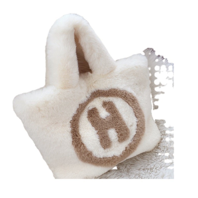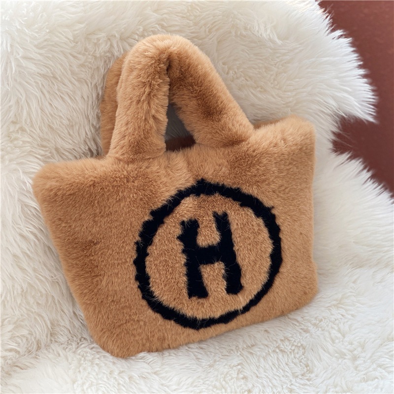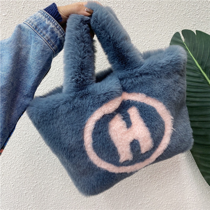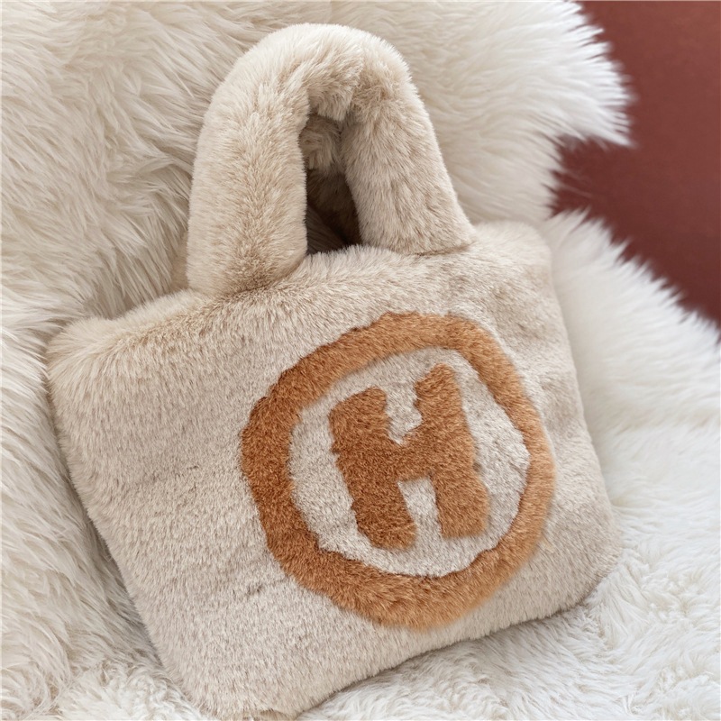仿兔毛手拎包H字样人造毛仿毛女包手提斜挎包休闲百搭学生毛绒包
